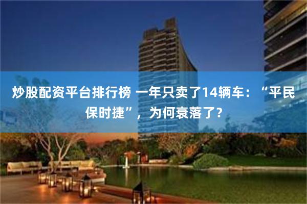 炒股配资平台排行榜 一年只卖了14辆车:“平民保时捷”,为何衰落了?众泰汽车生死局炒股配资平台排行榜 9 月 9 日晚间,众泰汽车发布股票交易异常波动公告称,今年已无法复工复产,公司面临持续经营能力存在不确定性的风险。 在中国汽车行业,众泰汽车号称"平民保时捷",2016 年销量一度达到了 33 万辆。 就在去年,众泰汽车只卖了 14 辆车。 众泰汽车,为何衰落了? 平民保时捷 众泰汽车成立于
