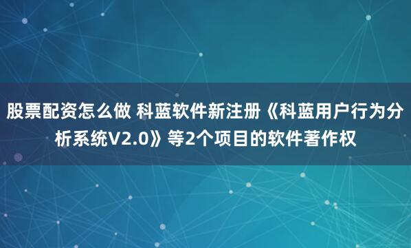 股票配资怎么做 科蓝软件新注册《科蓝用户行为分析系统V2.0》等2个项目的软件著作权证券之星消息,近日科蓝软件(300663)新注册了2个项目的软件著作权,包括《科蓝用户行为分析系统V2.0》、《科蓝一体化管控平台系统V12.0》等。今年以来科蓝软件新注册软件著作权17个,较去年同期增加了142.86%。结合公司2024年中报财务数据,2024上半年公司在研发方面投入了4578.55万元,同比减23.61%。