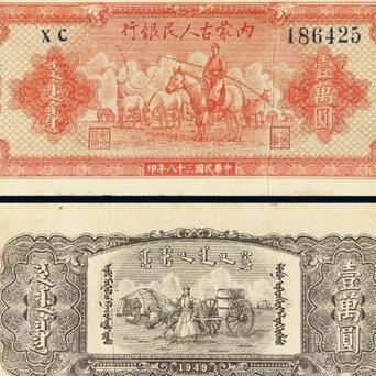 当时,该纸币主要在内蒙古地区发行,由于面额较大且流通时间短,再加上早期纸张质量不高,保存下来的极为稀少,具有极高的收藏价值。